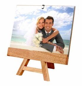Portarretrato con sujetador para colgar en la pared. Posición vertical con gancho para sujetar foto de 10 x 15 cm.