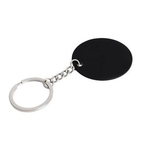 Llavero circular con acabado rubber, diseño de balón de soccer y aro reforzado.